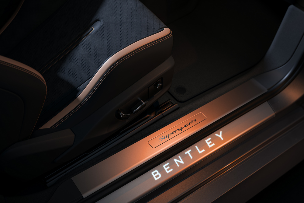 • กันชนหน้าส่วนล่างรูปแบบใหม่ พร้อมสปลิตเตอร์หน้าแบบแอโรไดนามิกที่มีขนาดใหญ่ที่สุดเท่าที่รถยนต์เบนท์ลีย์เคยติดตั้งมา กันชนมีช่องระบายความร้อนใหม่สองช่องในแต่ละด้าน ซึ่งส่งผ่านลมไปยังเบรกหน้าและเครื่องยนต์ เหนือกันชนตกแต่งด้วยกระจังหน้าแบบตาข่ายน้ำหนักเบาดีไซน์ใหม่อันเป็นเอกลักษณ์เฉพาะของรุ่น Supersports ที่ผลิตจากอะลูมิเนียมคุณภาพสูง
