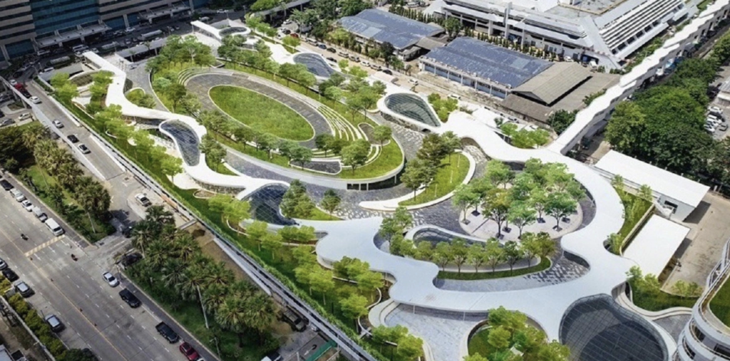 ไฮไลท์ของพื้นที่คือสวนที่เชื่อมต่อกันรอบด้าน เช่น สวนเกาะกลางถนน สวนลอยฟ้า A-D ที่เชื่อมกับรถไฟฟ้าสายสีชมพู สถานีศูนย์ราชการเฉลิมพระเกียรติ และสวนผสาน B-C บนอุโมงค์ลอดรถ ทำให้ที่นี่กลายเป็นจุดเช็คอินสีเขียวแห่งใหม่ของกรุงเทพฯ ที่เหมาะทั้งพักผ่อน ออกกำลังกาย สูดอากาศบริสุทธิ์ หรือถ่ายรูปชิค ๆ