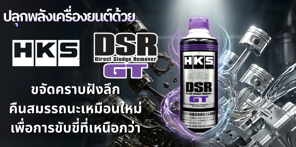 💡 HKS Guru Tip: การล้างเครื่องยนต์ไม่จำเป็นต้องรื้อออกมาล้างใหญ่เสมอไปครับ เทคนิคง่ายๆ คือการใช้ Flushing Oil หรือน้ำยาทำความสะอาดอย่าง HKS DSR GT เติมผสมก่อนถ่ายน้ำมันเครื่องเก่าเพียง 15 นาที จะช่วยละลายคราบเหนียวเหล่านี้ให้เหลวและไหลออกมาจนเกลี้ยง คืนความสะอาดให้เครื่องยนต์ได้เกือบ 100% ครับ