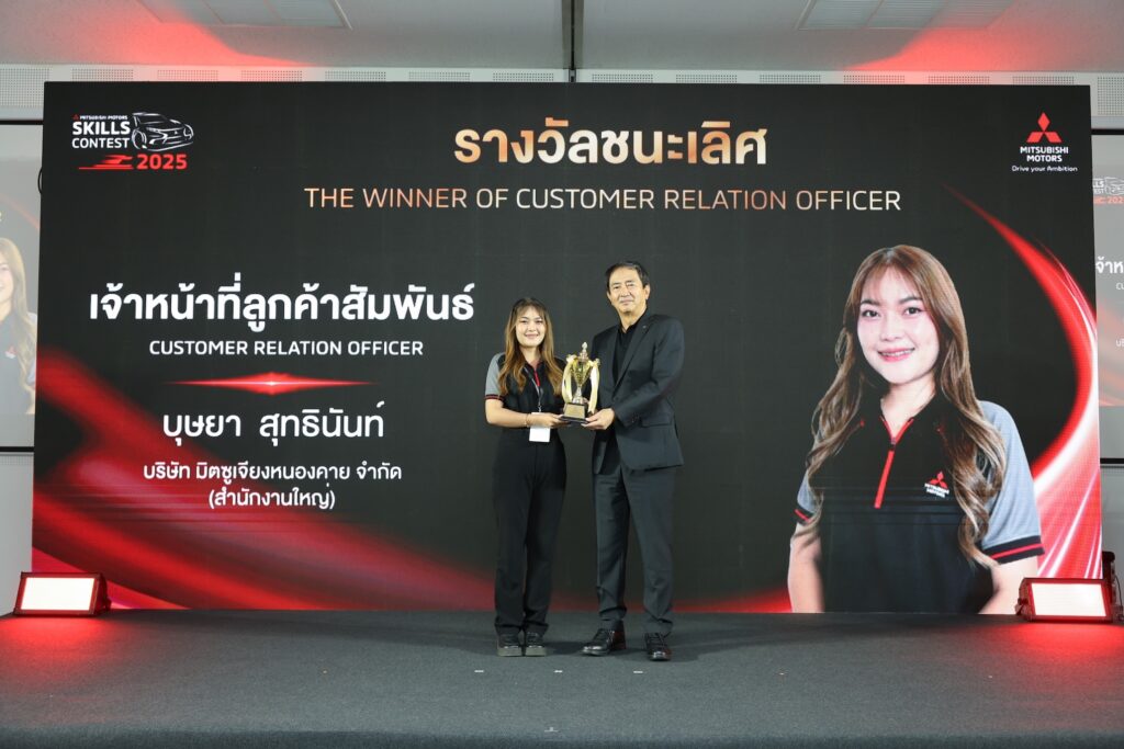 • นางสาวบุษยา สุทธินันท์ บริษัท มิตซูเจียงหนองคาย จำกัด (สำนักงานใหญ่) จ. หนองคาย รางวัลชนะเลิศ ประเภทเจ้าหน้าที่ลูกค้าสัมพันธ์
