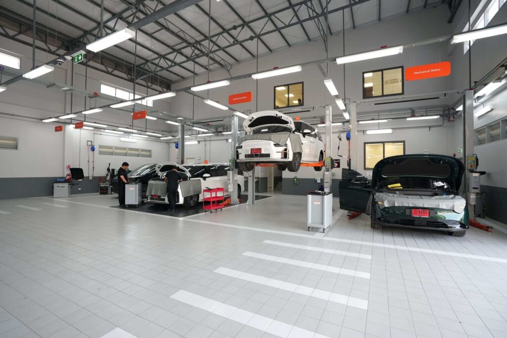 3. The Power of Body & Paint: การที่ศูนย์บริการราชพฤกษ์รองรับงาน “ซ่อมสีและตัวถัง” ได้เองจบในที่เดียว ถือเป็นไพ่ตายสำคัญที่ทำให้ลูกค้าเศรษฐีอุ่นใจ เพราะปัญหาใหญ่อย่างหนึ่งของรถ EV ในปัจจุบันคือการหาร้านซ่อมตัวถังที่ได้มาตรฐานและคิวไม่ยาว การันตีด้วยช่องซ่อม 8 ช่อง รับรถได้ 600 คัน/เดือน จึงเป็นการการันตีว่าลูกค้าจะไม่ถูกทอดทิ้งหลังการขายอย่างแน่นอน