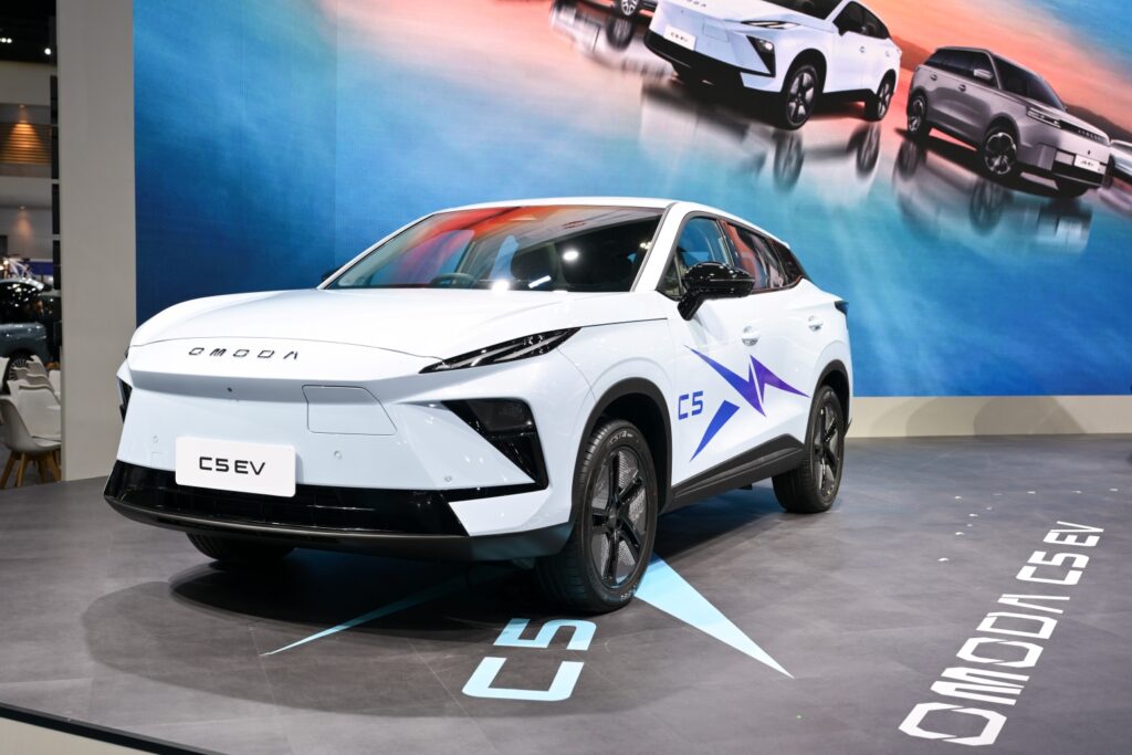 2. THE NEW OMODA C5 EV: สปอร์ตล้ำ โดนใจวัยรุ่น ตามมาติดๆ เป็นอันดับสอง กับรถ EV สำหรับคนที่มองหาราคาเริ่มต้นที่คุ้มค่า จุดขายของรุ่นนี้คือดีไซน์ด้านหน้าที่ดุดันสไตล์ ROBOSHARK ผสานกับสัดส่วนตัวรถที่ดูล้ำสมัยและฟังก์ชันความปลอดภัยที่ให้มาครบ จบในตัว เหมาะมากสำหรับเป็นรถ EV คันแรกของวัยรุ่นสร้างตัว หรือคนที่ใช้ขับขี่ในชีวิตประจำวัน (Daily Commute)