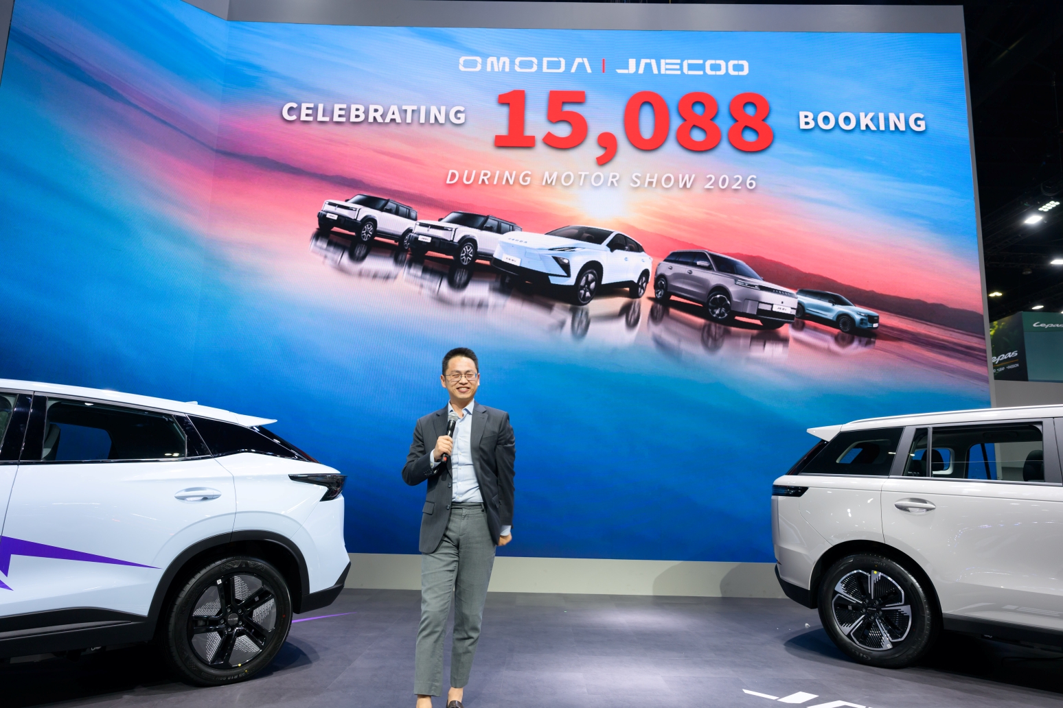 แต่แบรนด์ที่สร้างเซอร์ไพรส์และทำผลงานได้อย่างร้อนแรงจนเราต้องหยิบมาพูดถึงในวันนี้คือ OMODA & JAECOO (โอโมด้า แอนด์ เจคู) ที่ฟาดสถิติใหม่ กวาดยอดจองตลอดทั้งงานไปได้สูงถึง 15,088 คัน! ดันตัวเองขึ้นแท่นอันดับ 2 ในกลุ่มแบรนด์ยานยนต์ไฟฟ้าที่ได้รับความนิยมสูงสุดในงานไปครองแบบสวยงามครับ