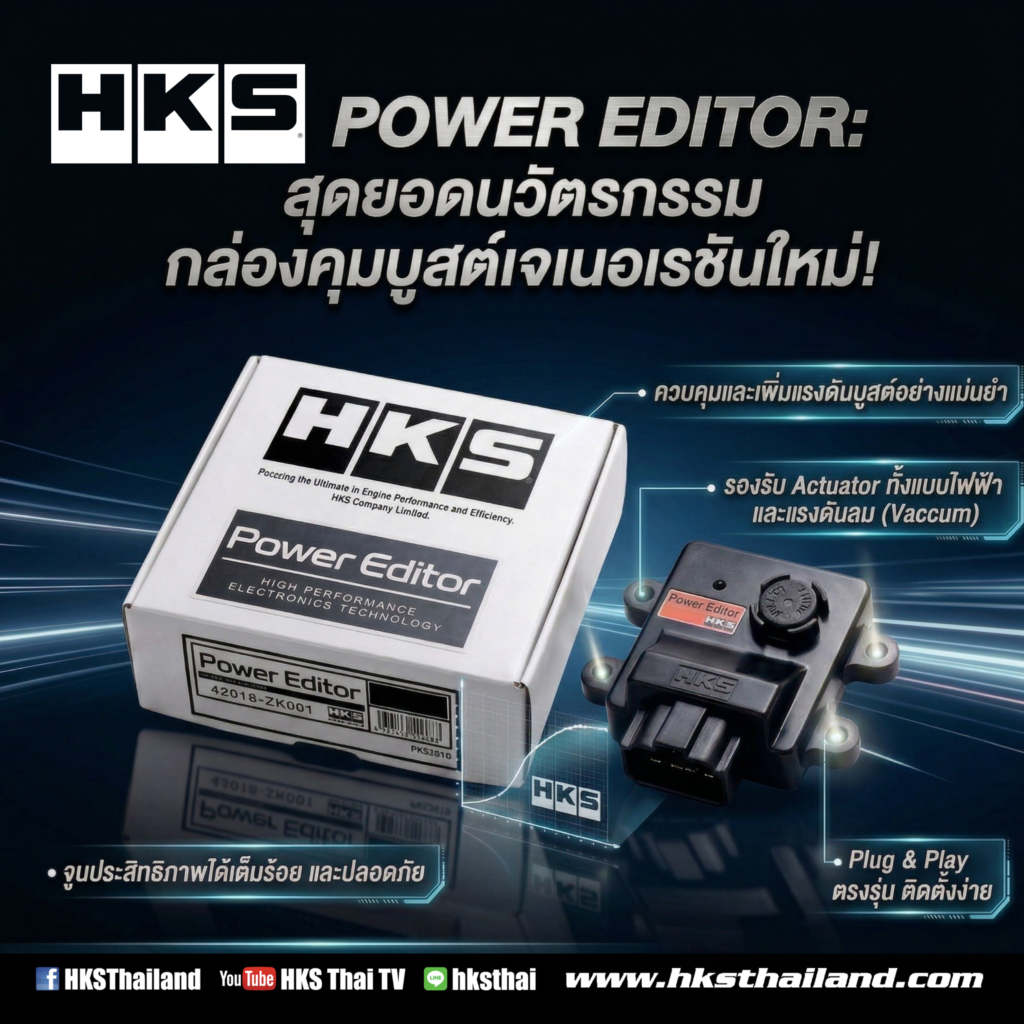 HKS Power Editor: สุดยอดนวัตกรรมกล่องคุมบูสต์เจเนอเรชันใหม่ สำนักแต่งระดับโลกจากญี่ปุ่นอย่าง HKS เข้าใจปัญหานี้ดีที่สุดครับ จึงได้ออกแบบ HKS Power Editor กล่องเพิ่มบูสต์อัจฉริยะที่เกิดมาเพื่อ “รถยนต์เทอร์โบยุคใหม่” โดยเฉพาะ