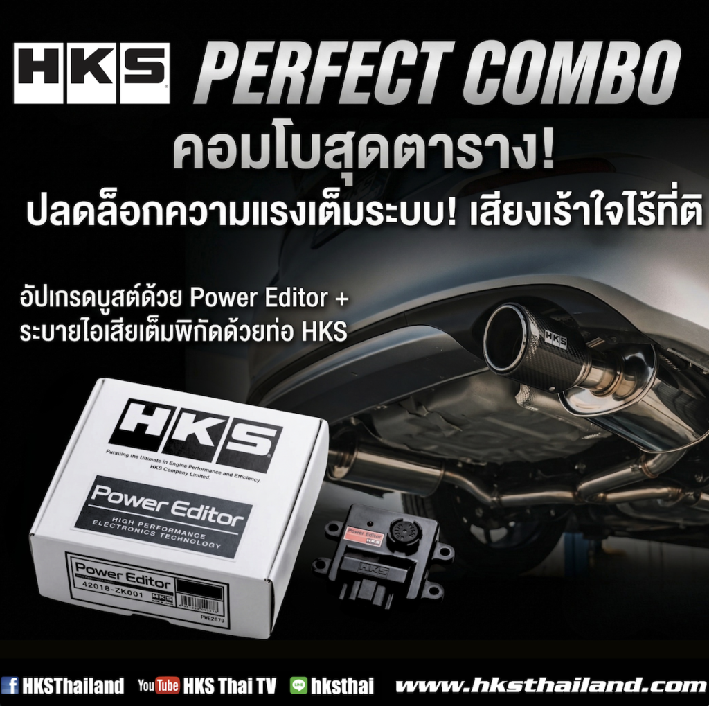 นี่แหละครับคือเหตุผลที่ว่าทำไมสาย Performance ถึงยกให้การใส่กล่อง Power Editor คู่กับ ท่อไอเสีย HKS เป็น “Perfect Combo” เพราะเมื่อท่อไอเสียระบายได้โล่งขึ้น ลดอาการอั้น ลมเข้าลึก-ออกไว เครื่องยนต์ก็จะทำงานได้อย่างสมบูรณ์แบบ ปลดปล่อยพละกำลัง (ม้าและทอร์ค) ออกมาได้เต็มระบบอย่างแท้จริง แถมยังได้เสียงท่อทุ้มๆ นุ่มๆ สไตล์ JDM เป็นกำไรชีวิตอีกต่างหาก!