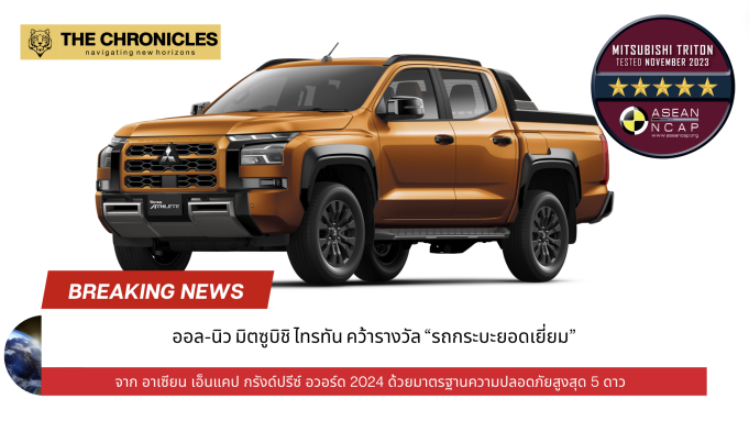 เมื่อวันที่ 6 มิถุนายน 2567: ออล-นิว มิตซูบิชิ ไทรทัน ตอกย้ำความสำเร็จ ในการเป็นรถกระบะหนี่งเดียวที่คว้ารางวัล “รถกระบะยอดเยี่ยม” จาก อาเซียน เอ็นแคป กรังด์ปรีซ์ อวอร์ด 2024 (ASEAN NCAP Grand Prix Awards 2024) จากการได้รับการรับรองมาตรฐานความปลอดภัยระดับสูงสุด 5 ดาว สำหรับ ออล-นิว มิตซูบิชิ ไทรทัน ทุกรุ่นย่อย ภายใต้การทดสอบการชนของรถยนต์ใหม่ โดย อาเซียน เอ็นแคป (ASEAN NCAP) ซึ่งเป็นการทดสอบเพื่อประเมินสมรรถนะด้านความปลอดภัยของยานยนต์รุ่นใหม่ ที่วางจำหน่ายในภูมิภาคเอเชียตะวันออกเฉียงใต้ ระหว่างปี 2564 -...